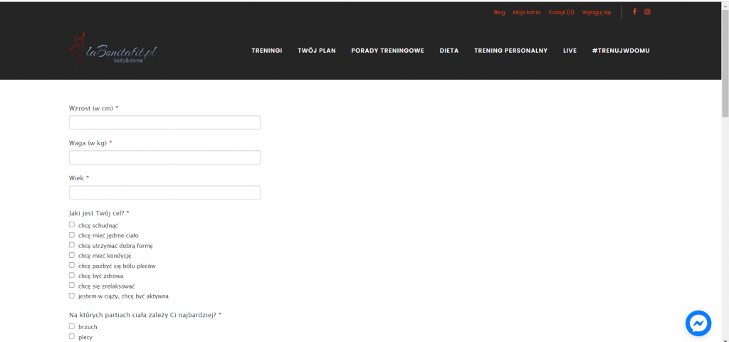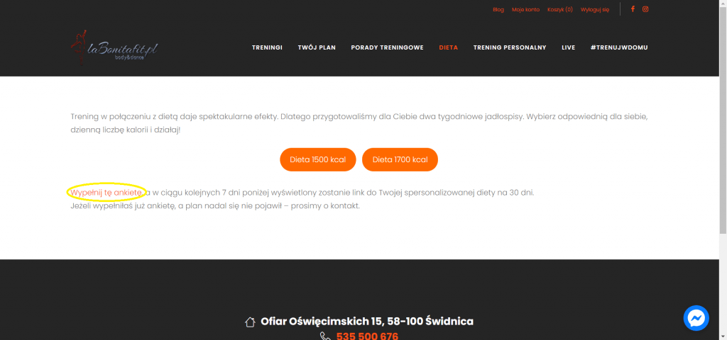 Jeśli posiadasz wykupioną spersonalizowaną dietę, to po kliknięciu w “Wypełnij tę ankietę” pojawi się ankieta dietetyczna, po której wypełnieniu otrzymasz swój indywidualny jadłospis w ciągu 7 dni.