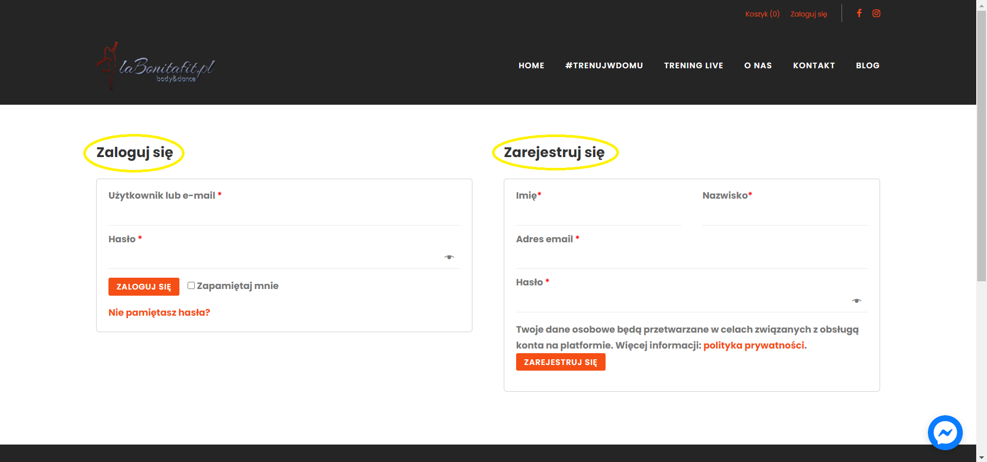 Jeśli jesteś tu pierwszy raz, również możesz bez kupowania pakietów zarejestrować się na platformę, w podobny sposób jak powyżej. Z tą różnicą, że po prawej stronie wpisujesz swoje dane.