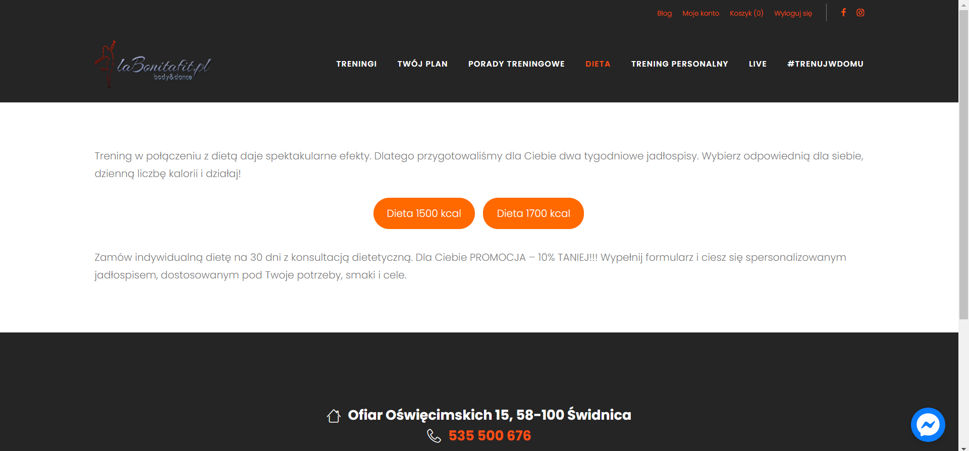 Zakładka „Dieta” kryje w sobie jadłospisy, z których po wykupieniu dostępu do platformy treningowej będziesz mogła skorzystać. Pamiętaj jednak, że nie jest do indywidualnie spersonalizowana dieta. Tę możesz otrzymać po wykupieniu diety i wypełnieniu ankiety dietetycznej.